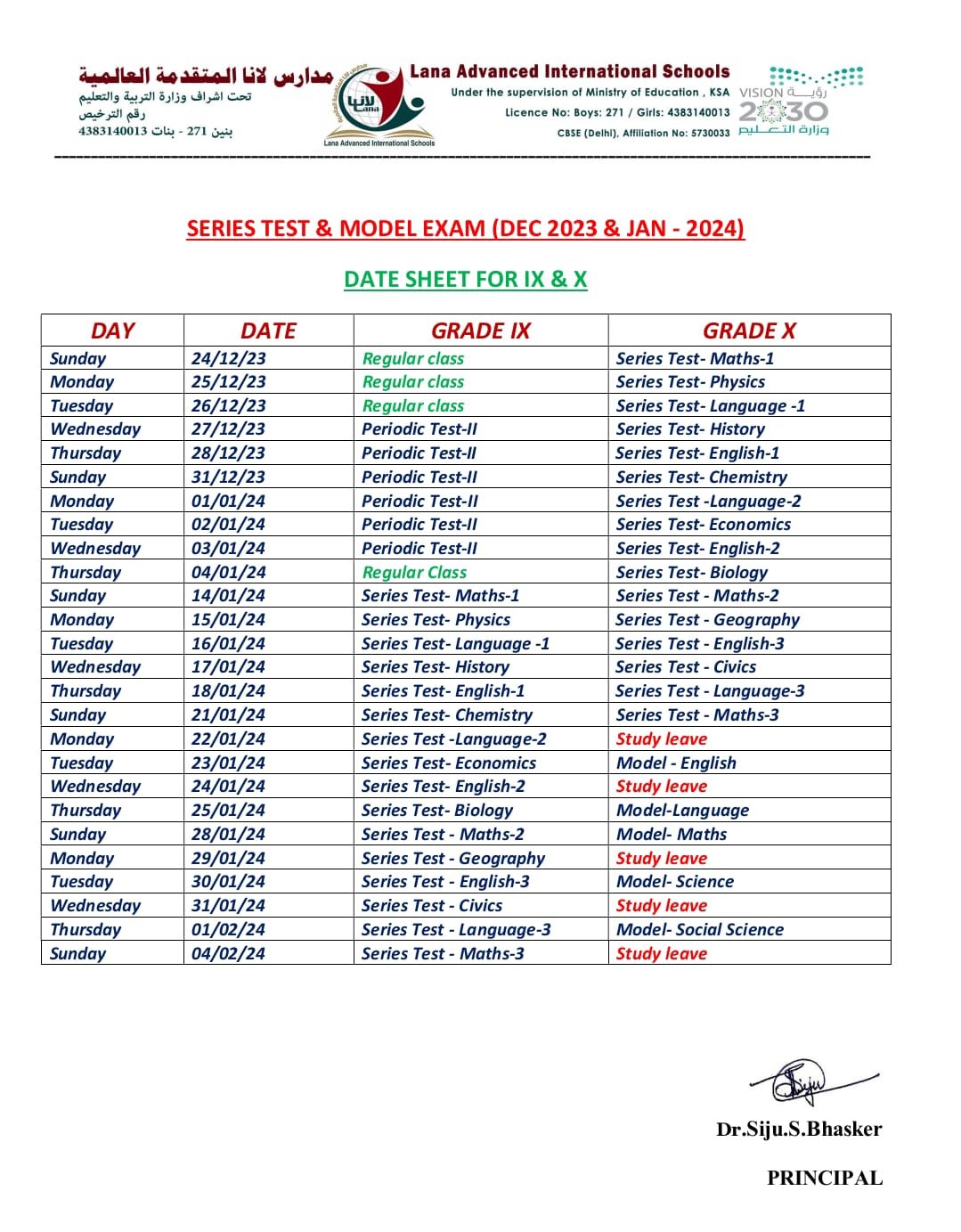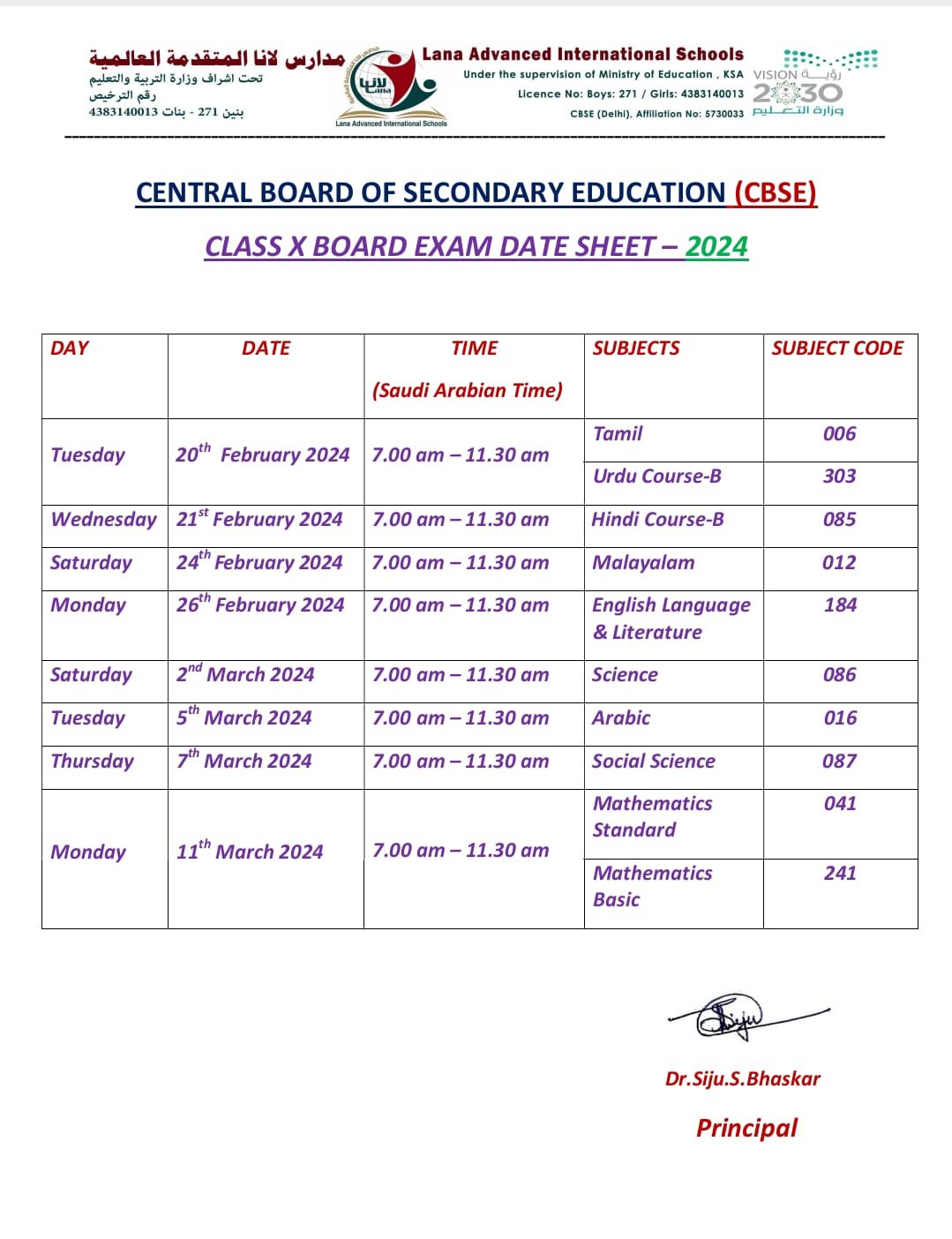 CLASS X BOARD EXAM DATE SHEET – 2024