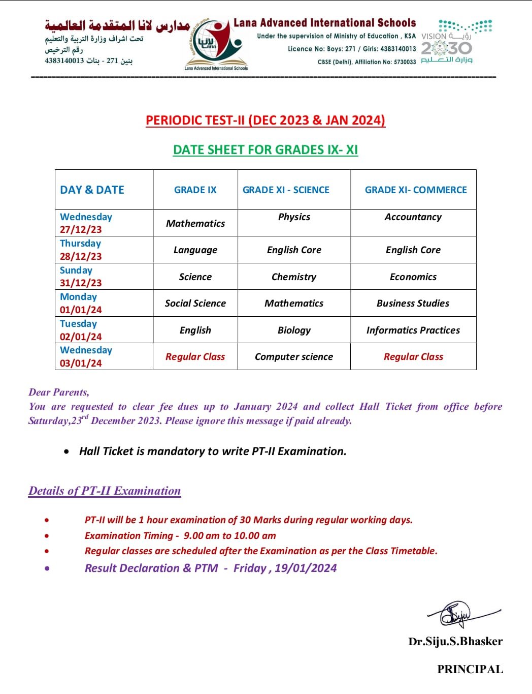 PERIODIC TEST – II ( DEC 2023 & 2024 )